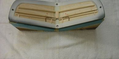 The aluminum molds are waxed and masked for the paint scheme.
